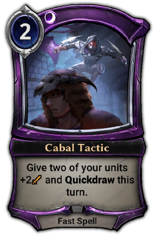 Each of these tactics is an upgraded version of a card from a previous set.[2] Cabal Tactic is an upgraded version of Rapid Shot.