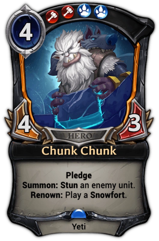 Auralian. Faction pairs that appear in more than one of them received a lot of support, including a cycle of rare units with Pledge that cost double influence for each faction of the pair. Chunk Chunk is a part of this cycle consisting of: Eaton, Seditious Noble, Chunk Chunk, Colossal Pteriax, Dread, and Howling Kurtarr.