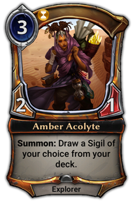 Emerald Acolyte is part the 5-card acolytes cycle, 3-cost 2/1 unit cards in The Empty Throne with a Summon ability: