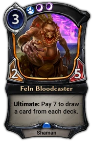 - Feln Bloodcaster - Now a Shaman with "Ultimate: Pay 7 to draw a card from each player's deck." (was a Beast with "Summon: Your other units are Deadly this turn.").